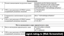 Крым.Реалии выяснили, что общественная организация «Украинцы Крыма» во главе с Юрием Ломенко также зарегистрирована и в украинском правовом поле с 2018 года.