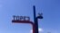 На рекламной доске объявлений цвета флага Украины написаны списки изданий террористической республики и государства-оккупанта